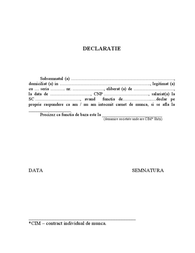 Recent, ministrul de interne marcel vela a declarat, potrivit agerpres, că adeverinţa eliberată de angajator sau declaraţia pe proprie răspundere pot fi prezentate personalului. Declar ca am luat la cunostinta de prevederile legii nr. Declarație pe proprie răspundere 1 se declară situația în care persoana nu locuiește la domiciliul prevăzut în actul de identitate.