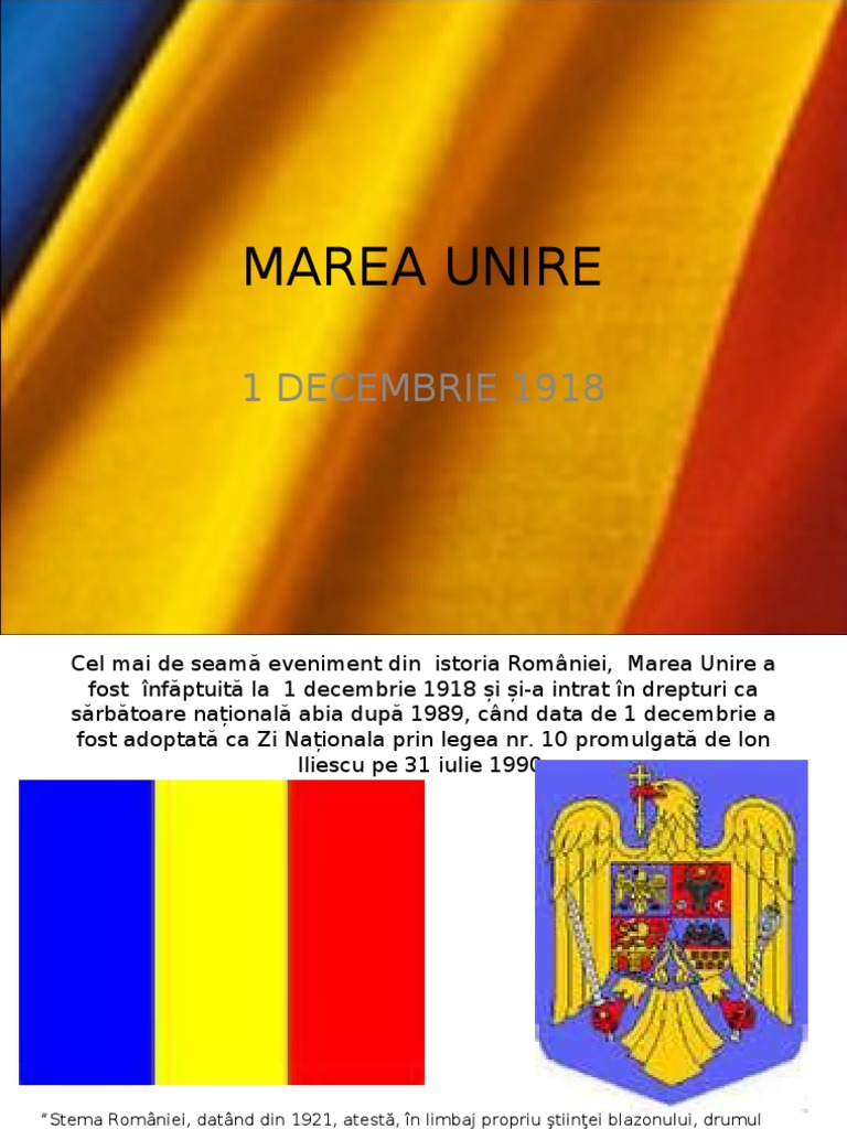 Istoric si politic favorabil realizarii marii uniri a tuturor provinciilor romanesti (basarabia, bucovina, banatul, crisana si maramuresul) cu romania, la conducerea tarii se afla regele ferdinand i de hohenzollern, nepotul regelui carol i, acesta din urma neavand un descendent in linie directa care sa. Comitetul national al romanilor din transilvania si banat, intrunit l a oradea mare, in ziua de 12 octombrie 1918, prin condeiul iscusit al lui vasile goldis a facut o incheiere, aratand ca numai recunoaste parlamentului si guvernului din. 2 rezultate pentru eticheta 1 decembrie 1918 cine a facut unirea.