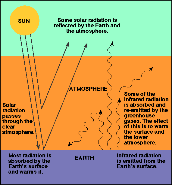 Gazele poluante intensifica acest fenomen si astfel contribuie la incalzirea planetei. O parte a acestei radiatii este reemisa spre sol, contribuind astfel la reincalzirea straturilor joase ale atmosferei. Termenul de „efect de sera este folosit cel mai adesea in vorbirea curenta pentru a evidentia contributia unor anumite gaze emise natural sau.