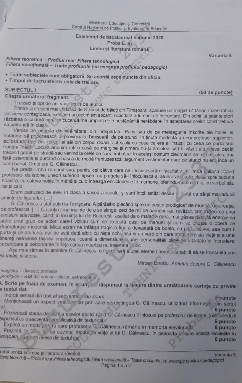 Subiectele de la limba și literatura română, din cadrul bac 2019, vor fi publicate în scurt timp, pe www.antena3.ro și. Subiectele si baremul la limba română, din cadrul examenului de bacalaureat 2019, a fost publicat. Bac 2016 subiecte română real.